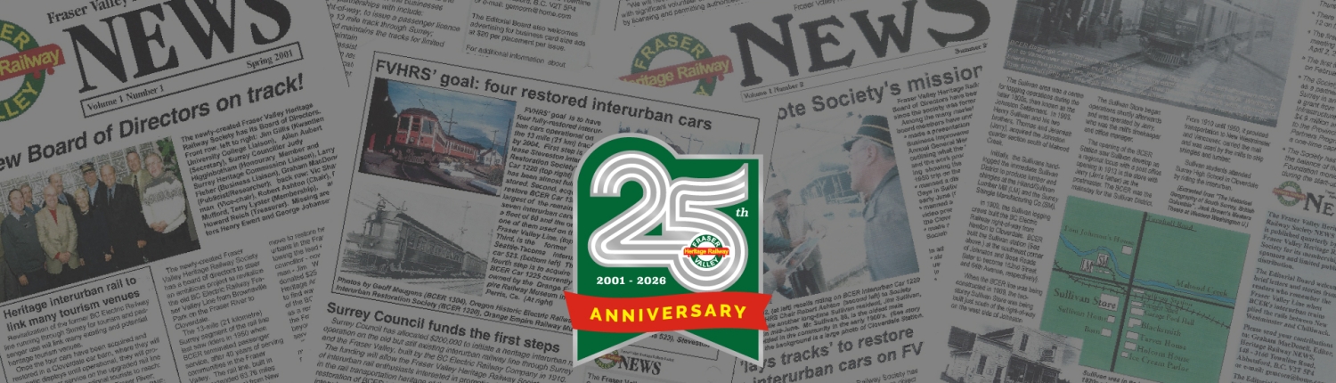 In 2026 the Fraser Valley Heritage Railway Society marks a remarkable milestone. For twenty five years volunteers, supporters, and the wider community have breathed life back into the historic BC Electric Railway. This Silver Anniversary is more than a date on the calendar. It is a year long celebration of local history, community spirit, and everything we have accomplished together.